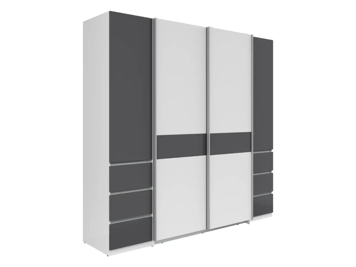 Armario de puertas correderas Fabio 215 cm con cajones blanco/grafito