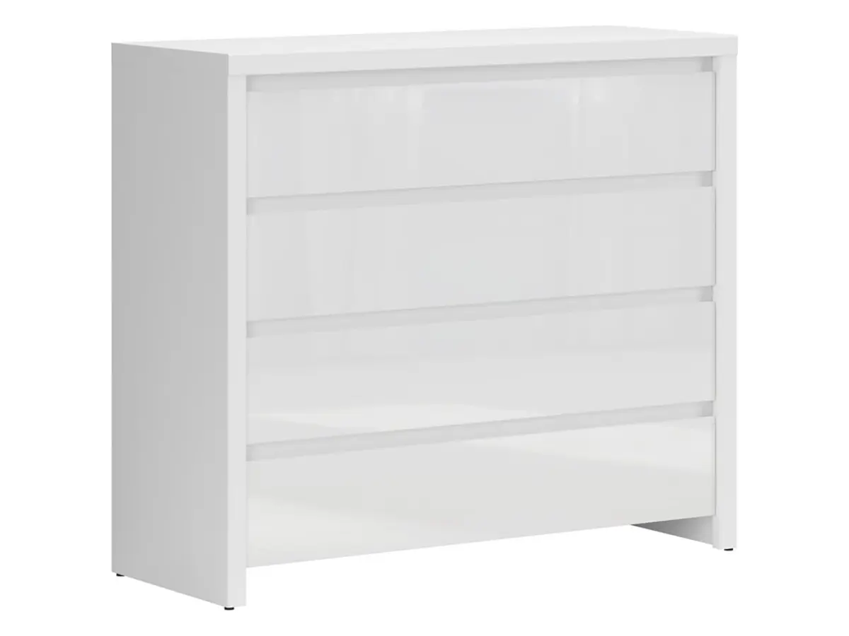 La cómoda Larios presenta un acabado íntegramente en blanco: la estructura en mate y los frontales en brillo, una combinación que aporta frescura y sofisticación a cualquier estancia. Su estética versátil se adapta perfectamente tanto a interiores modernos y minimalistas como a ambientes más clásicos.
