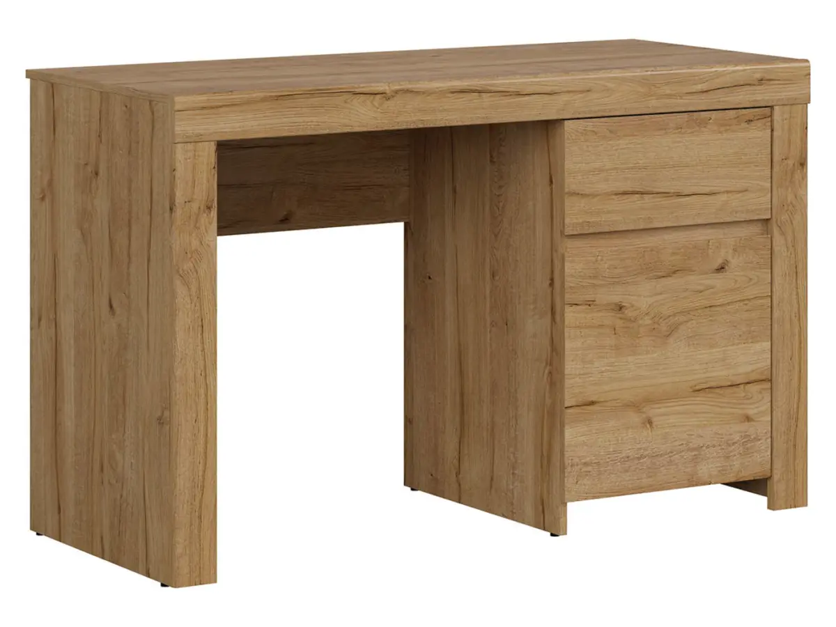 El escritorio Holten combina líneas limpias y atemporales con un acabado en roble Waterford de veta pronunciada que aporta carácter y calidez. Sus laterales reforzados, frentes sin tiradores y tablero de diseño propio lo convierten en una pieza destacada para cualquier habitación juvenil o zona de trabajo.