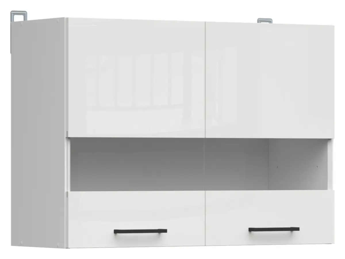 Armario de cocina superior Junona Line 80 cm de dos puertas con vitrina brillo tiza
