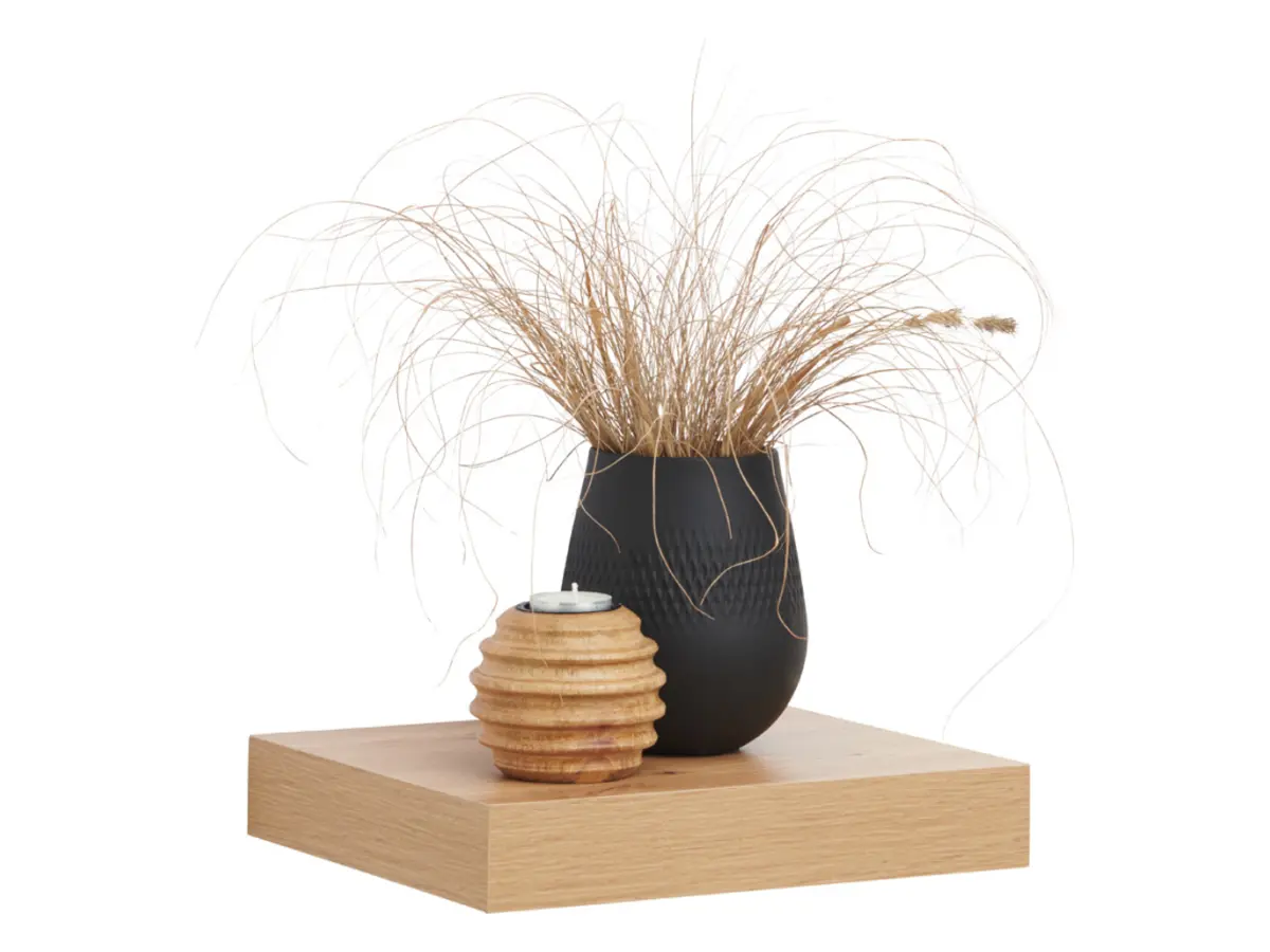 Con 30 cm de largo y 25 cm de fondo, ofrece espacio suficiente para una planta pequeña, un portarretratos o un vacíabolsillos. Al ir montado en la pared, libera espacio en el suelo y convierte cualquier rincón vacío —sobre el escritorio, junto a la cama o en el pasillo— en una zona útil de verdad.
