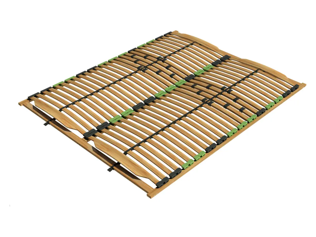 Fabricado en madera laminada encolada con 56 láminas de abedul flexible — un material que se dobla con el cuerpo y recupera su forma noche tras noche. La banda central reforzada añade estabilidad donde más se necesita, sin rigidez.
