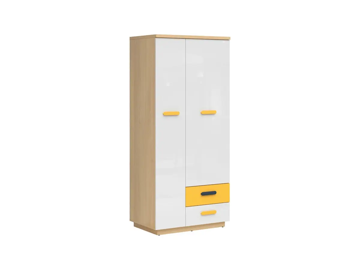 Armario de dos puertas Wesker 90 cm con cajones roble polaco/blanco brillo/amarillo