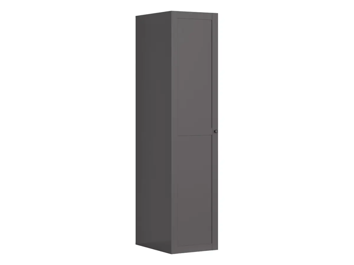 El acabado en grafito profundo y los frentes enmarcados aportan carácter a una silueta sencilla y limpia. El discreto tirador negro es el detalle final perfecto. Un armario que encaja tanto en dormitorios modernos como en pasillos de estilo escandinavo o rincones con aire vintage.