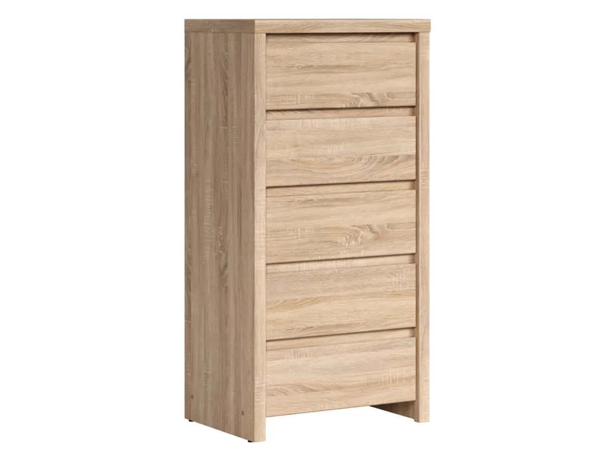 Sus cinco amplios cajones permiten organizar todo lo necesario: ropa, accesorios, papelería o cualquier objeto de uso cotidiano. Gracias a sus dimensiones compactas, es la solución perfecta para estancias donde el espacio es limitado.