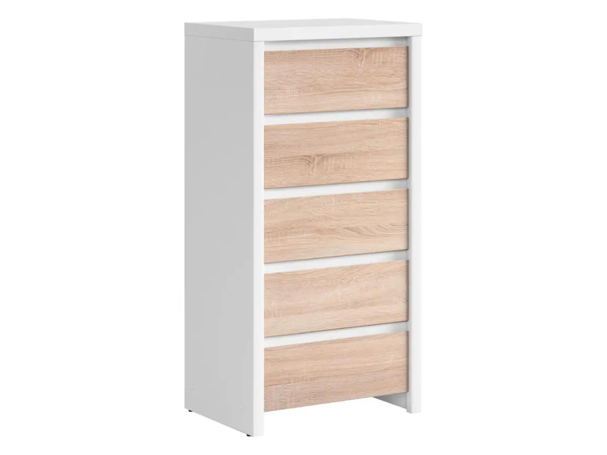 Sus cinco amplios cajones te permiten organizarlo todo con facilidad: desde ropa y accesorios hasta documentos. Sus dimensiones compactas la convierten en la opción ideal para espacios reducidos, sin renunciar a una gran capacidad de almacenaje.