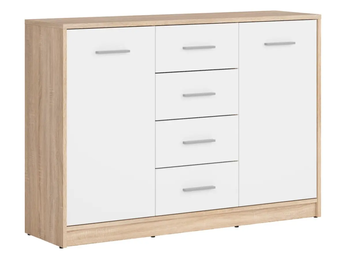 Cómoda Nepo Plus 119 cm con 2 puertas y 4 cajones roble sonoma/blanco