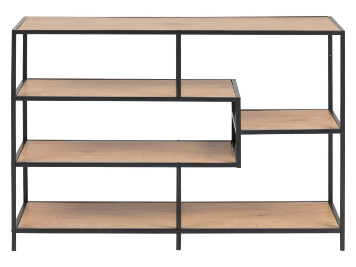 La estantería Seaford combina la esencia industrial del estilo loft con la calidez de los materiales naturales. Sus cuatro estantes dispuestos de forma asimétrica le aportan dinamismo: no es solo un mueble de almacenaje, sino un punto focal que dota de personalidad a cualquier estancia.