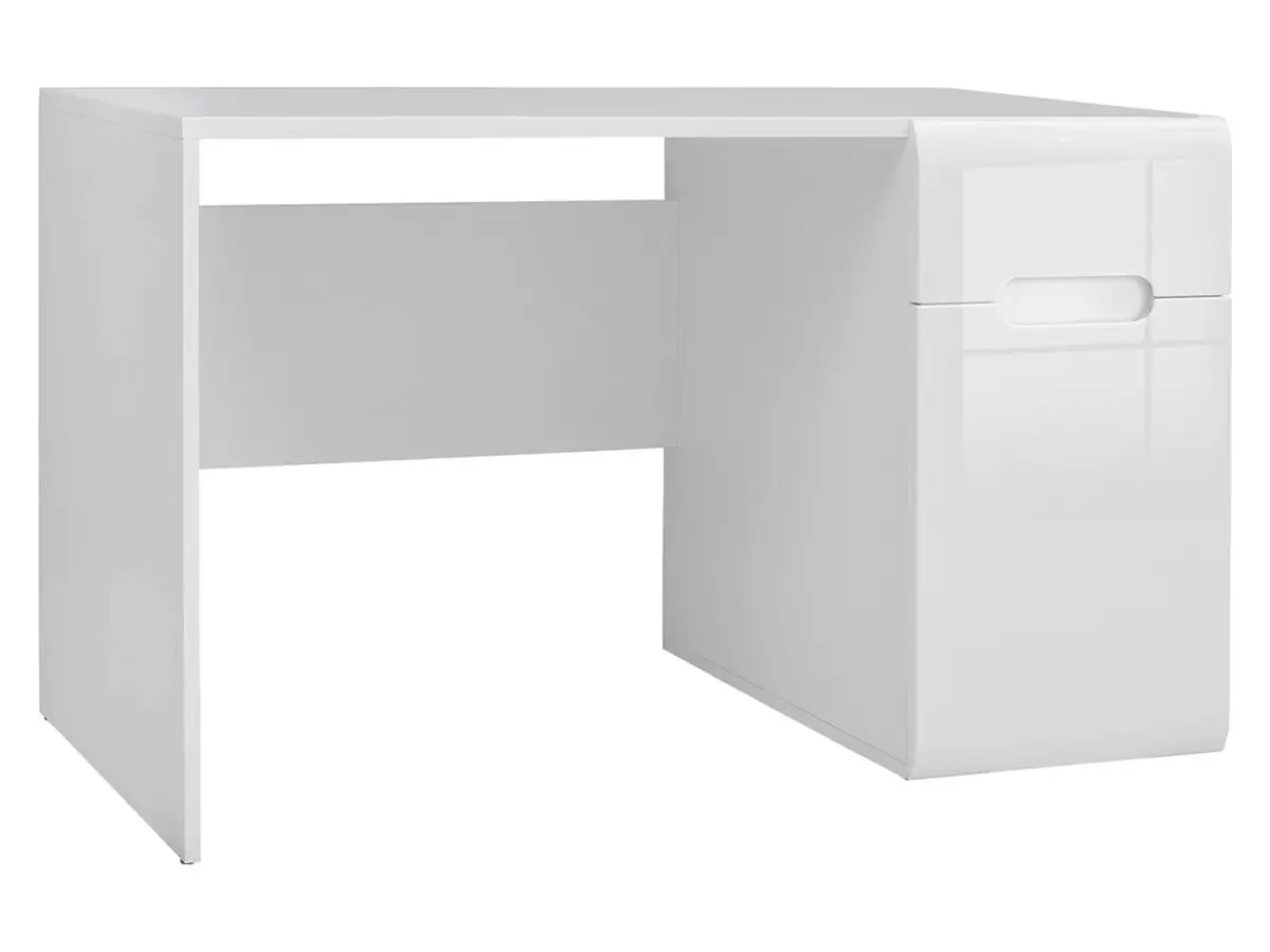 Con 120 cm de superficie, el tablero ofrece espacio de sobra para el portátil, una lámpara y todo lo que necesites tener a mano. Un cajón accesible y un armario compacto mantienen los documentos y el material de oficina siempre ordenados y a tu alcance.