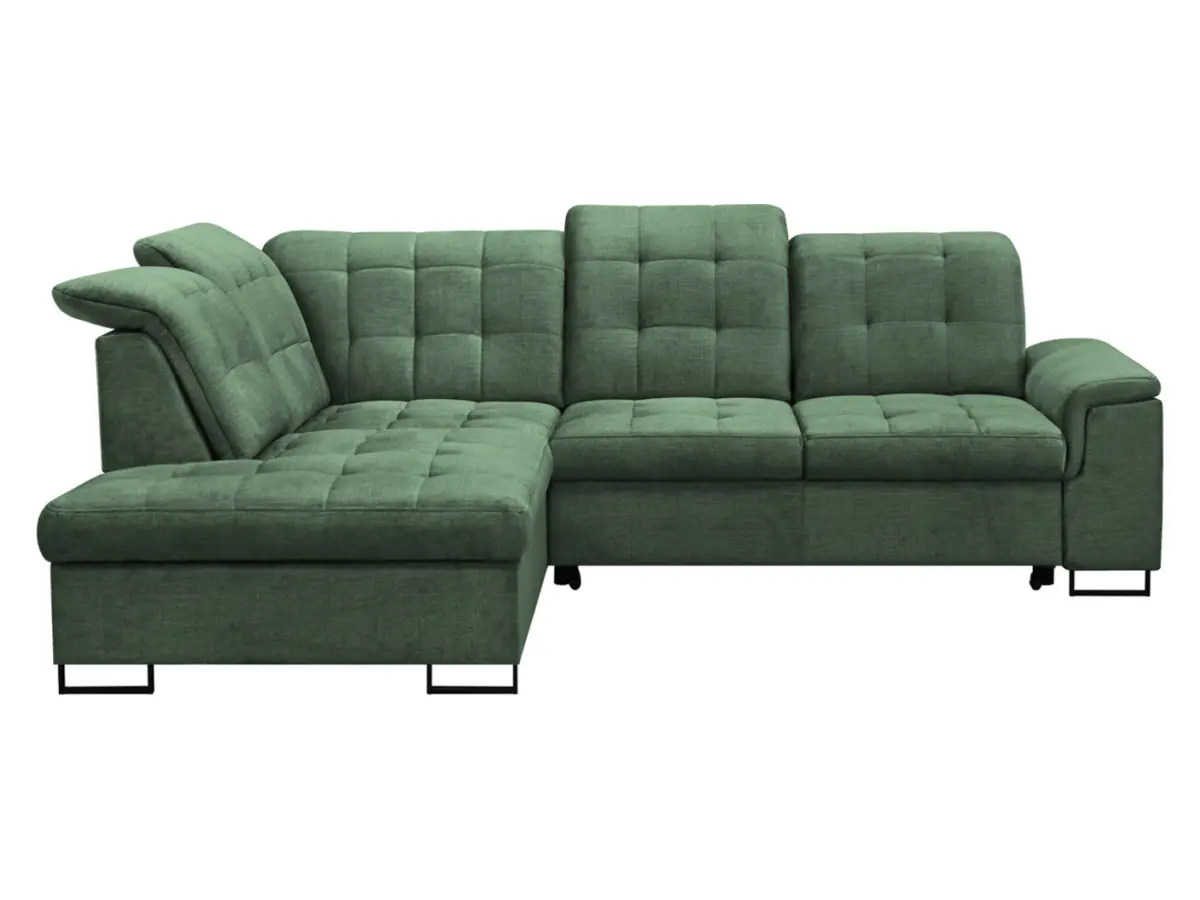 Sofá rinconera izquierdo Aragon extensible con reposacabezas y asiento ajustables verde