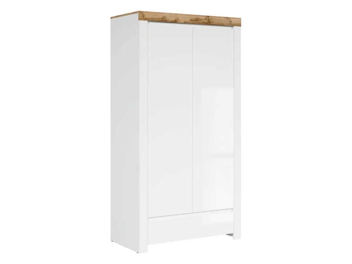 Armario de dos puertas Holten 106 cm con cajón blanco brillo/roble wotan