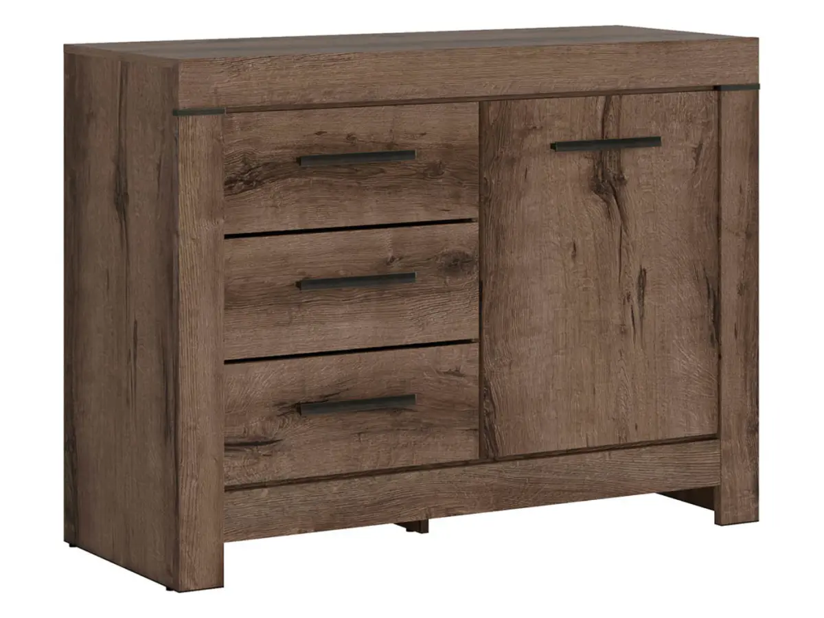 Con un armario espacioso y tres cajones compactos, la cómoda Balin ofrece sitio para todo, manteniéndolo fuera de la vista. Es ideal para tener a mano lo esencial mientras el salón permanece ordenado e impecable.
