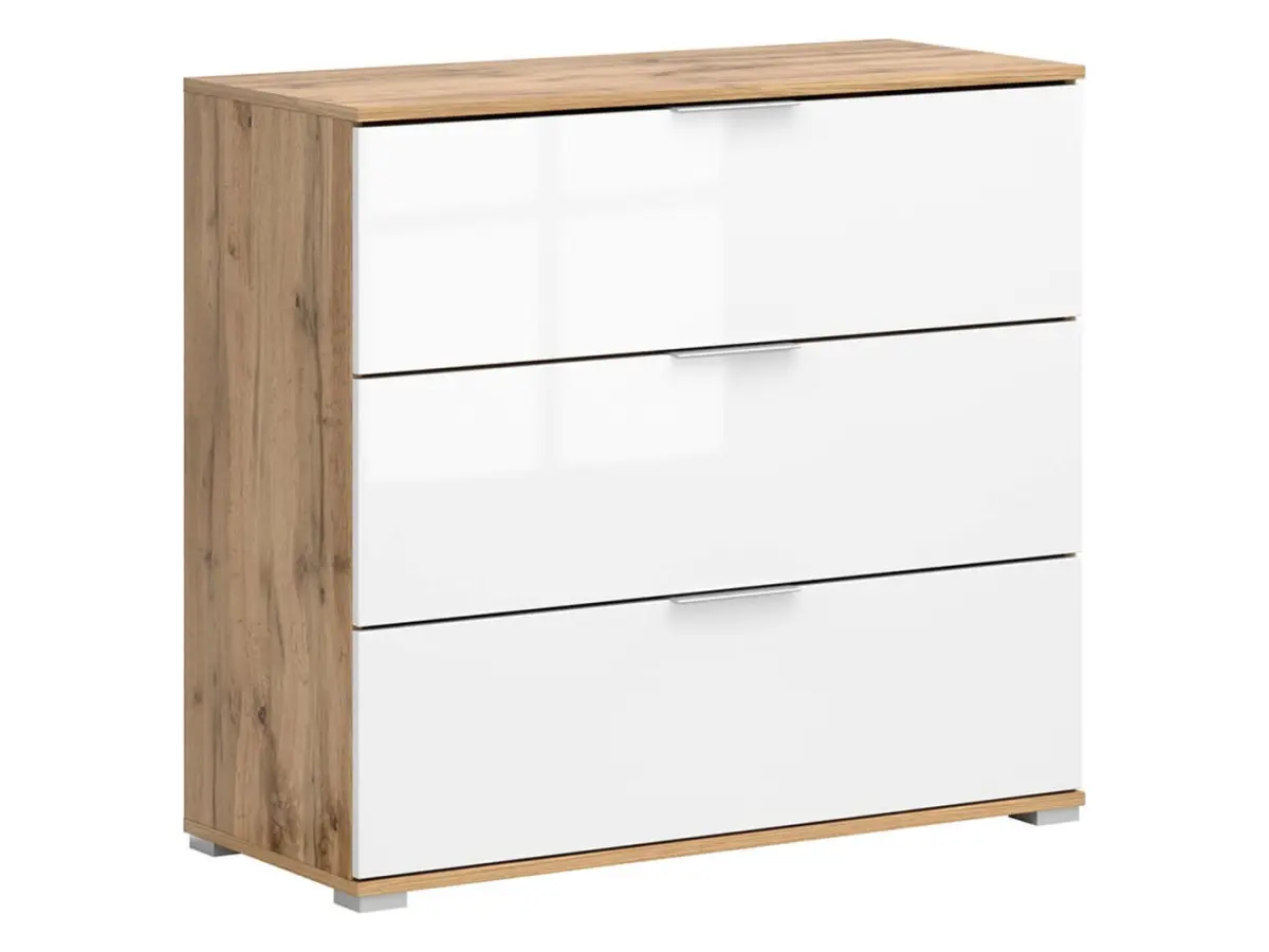 Cómoda Zele 95 cm con 3 cajones roble wotan/blanco brillo