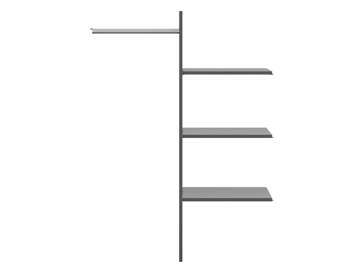 Un módulo pensado para quienes buscan tenerlo todo en su sitio: incluye una práctica barra para colgar ropa y tres estantes que crean cuatro compartimentos amplios, perfectos para jerséis, sudaderas y vaqueros. El caos en el armario es cosa del pasado.