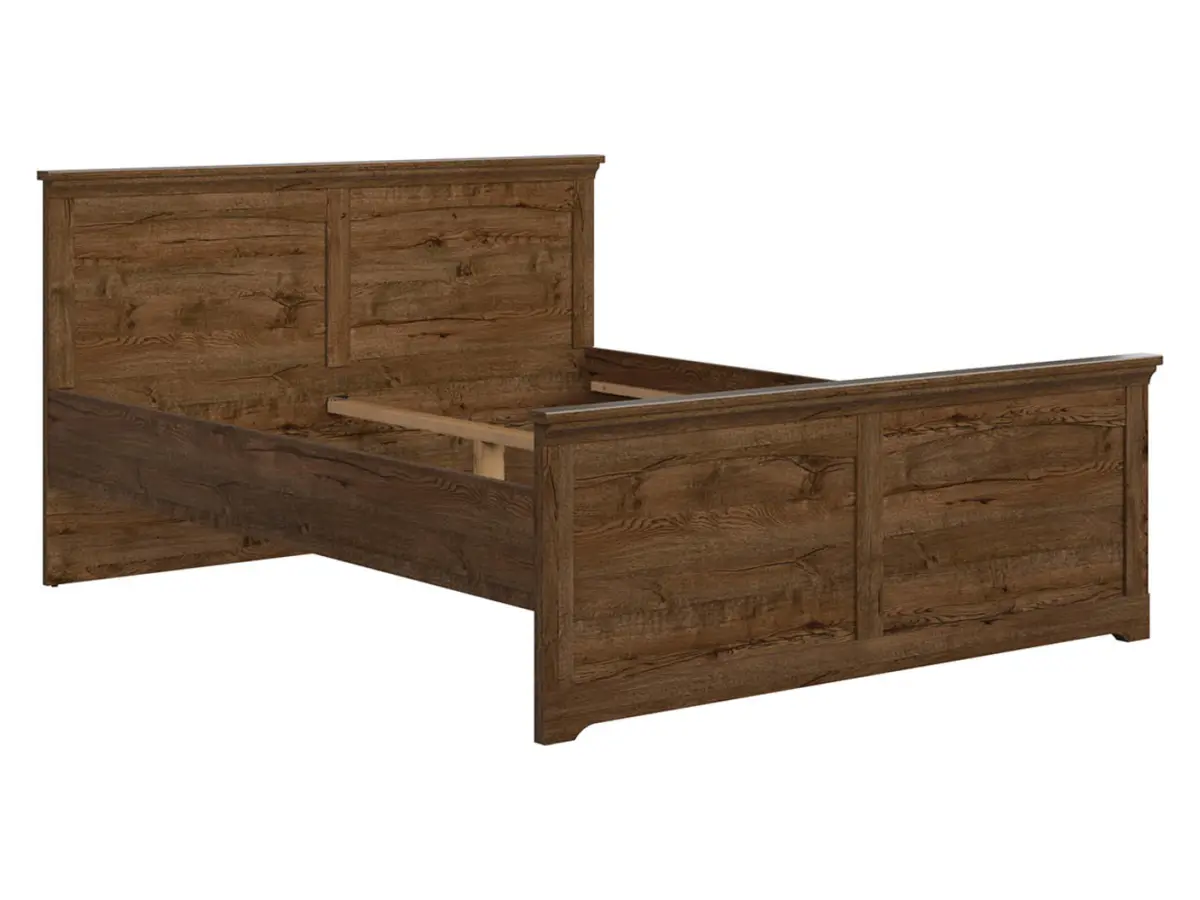 Patras es una cama ideal para los amantes de la decoración clásica: cabeceros ornamentados, tiradores de estilo antiguo y un acabado en roble April que reproduce el veteado natural de la madera, aportando una calidez genuina al dormitorio.