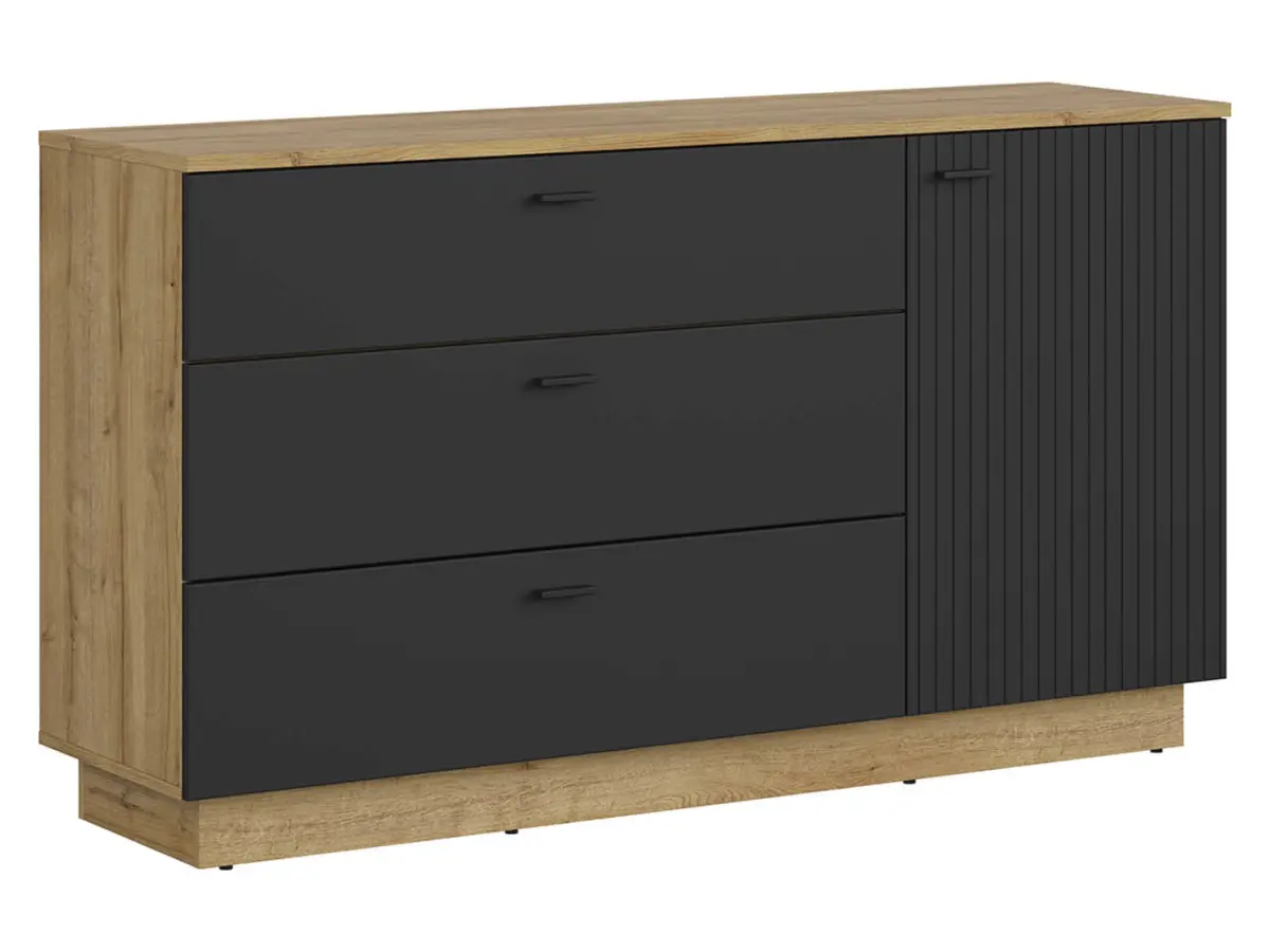 Cómoda Zenda 150 cm con puertas y 3 cajones roble waterford/negro