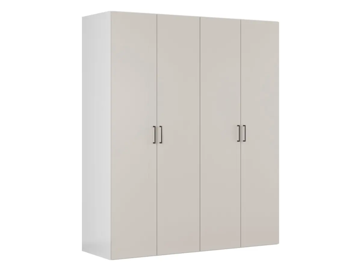 Las puertas de acabado liso en tono cachemira y los tiradores discretos confieren a este armario una presencia elegante y contemporánea. El interior en gris lino completa el conjunto con una combinación de tonos neutros que se integra con naturalidad en cualquier dormitorio o vestidor moderno.