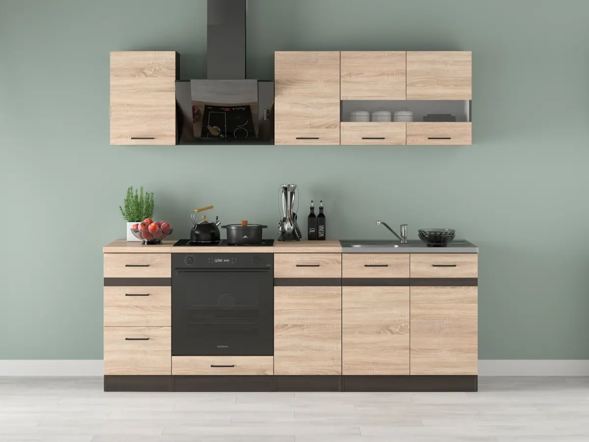 Conjunto de cocina Junona Line 220 cm roble sonoma con encimera