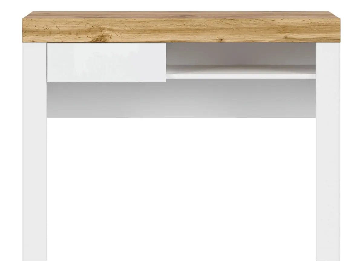 Aunque es compacto, el modelo Holten tiene un sitio para cada cosa: un cajón para cosméticos o accesorios de escritorio, y un estante abierto ideal para folios o paletas de sombras. Todo al alcance de la mano, sin ocupar demasiado espacio.
