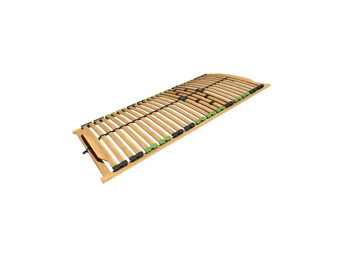 Fabricado con madera laminada de alta resistencia y 28 láminas de abedul flexibles, este somier distribuye el peso de forma uniforme y acompaña cada movimiento durante la noche. La banda central reforzada añade un extra de estabilidad donde más se necesita.
