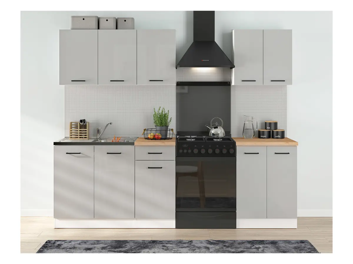 Conjunto de cocina Junona Line A 180 cm gris claro brillo sin encimera