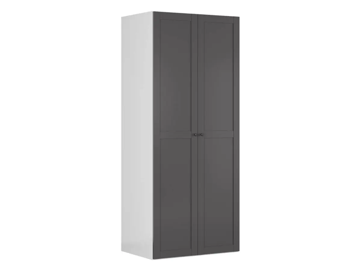 El modelo Flex combina un cuerpo blanco con frentes enmarcados en color grafito para lograr una estética moderna y sobria que encaja a la perfección en dormitorios, vestidores o recibidores. Los discretos tiradores de punto completan el conjunto con un detalle refinado sin sobrecargar el diseño.