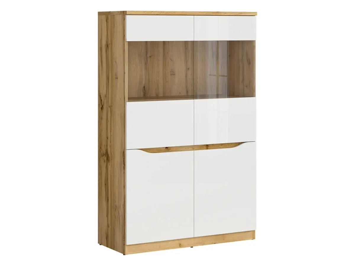 Vitrina Nuis 90 cm con 4 puertas roble wotan/blanco brillo