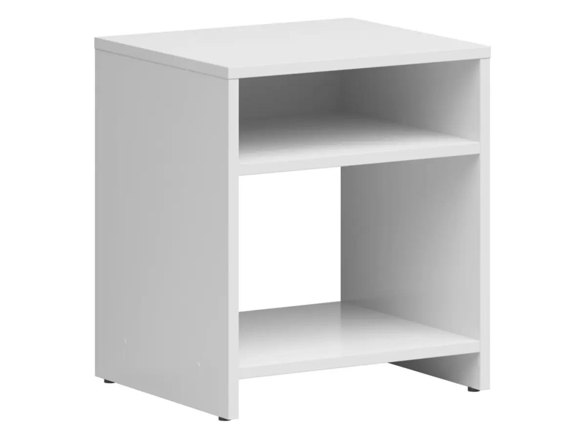 El blanco puro y las líneas sencillas de la mesita Neno encajan con naturalidad en cualquier dormitorio. Su estilo minimalista y atemporal no compite con la decoración, sino que la complementa, aportando calma y orden al espacio.