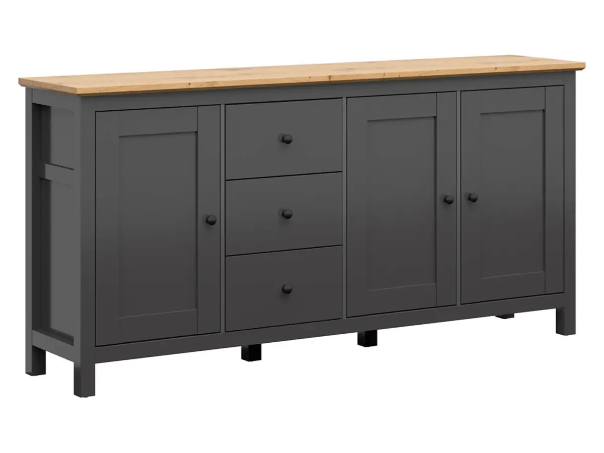 Cómoda Hesen 199 cm con 3 puertas y 3 cajones grafito/roble artisan