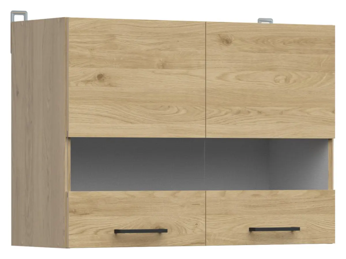 Armario superior de cocina Junona Line 80 cm de dos puertas con vitrina roble bernstein