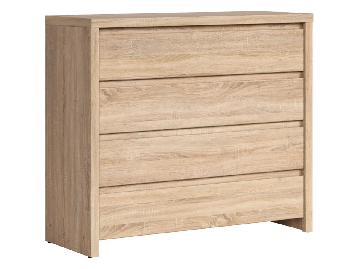 Cuatro cajones amplios ofrecen espacio de sobra para ropa, documentos y todos esos objetos del día a día que necesitan un lugar ordenado. Una solución práctica para el dormitorio, el salón o el despacho.