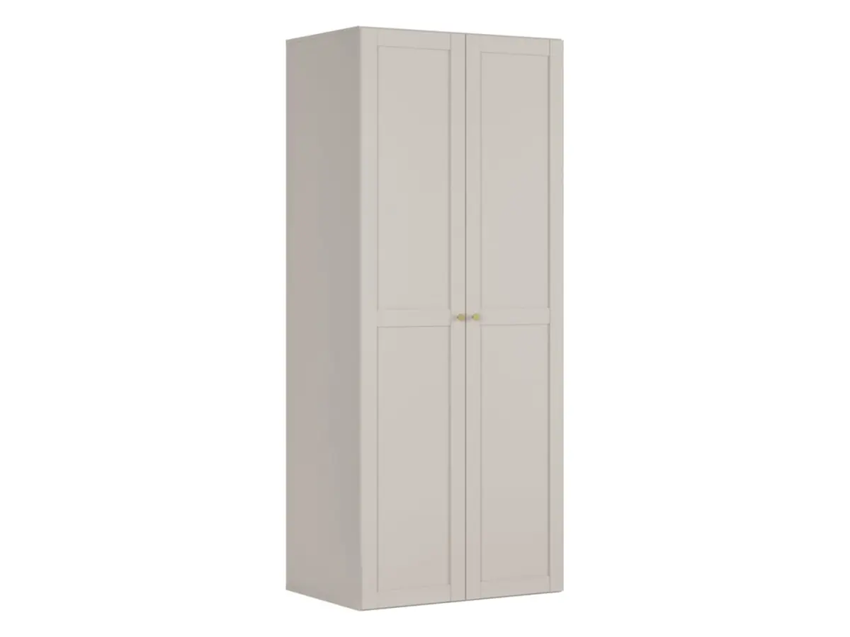 El armario Flex combina un exterior elegante en tono cachemira con tiradores tipo pomo en dorado, un detalle que marca la diferencia en cualquier dormitorio o vestidor. El interior en gris lino crea un contraste suave y moderno que perdura en el tiempo.