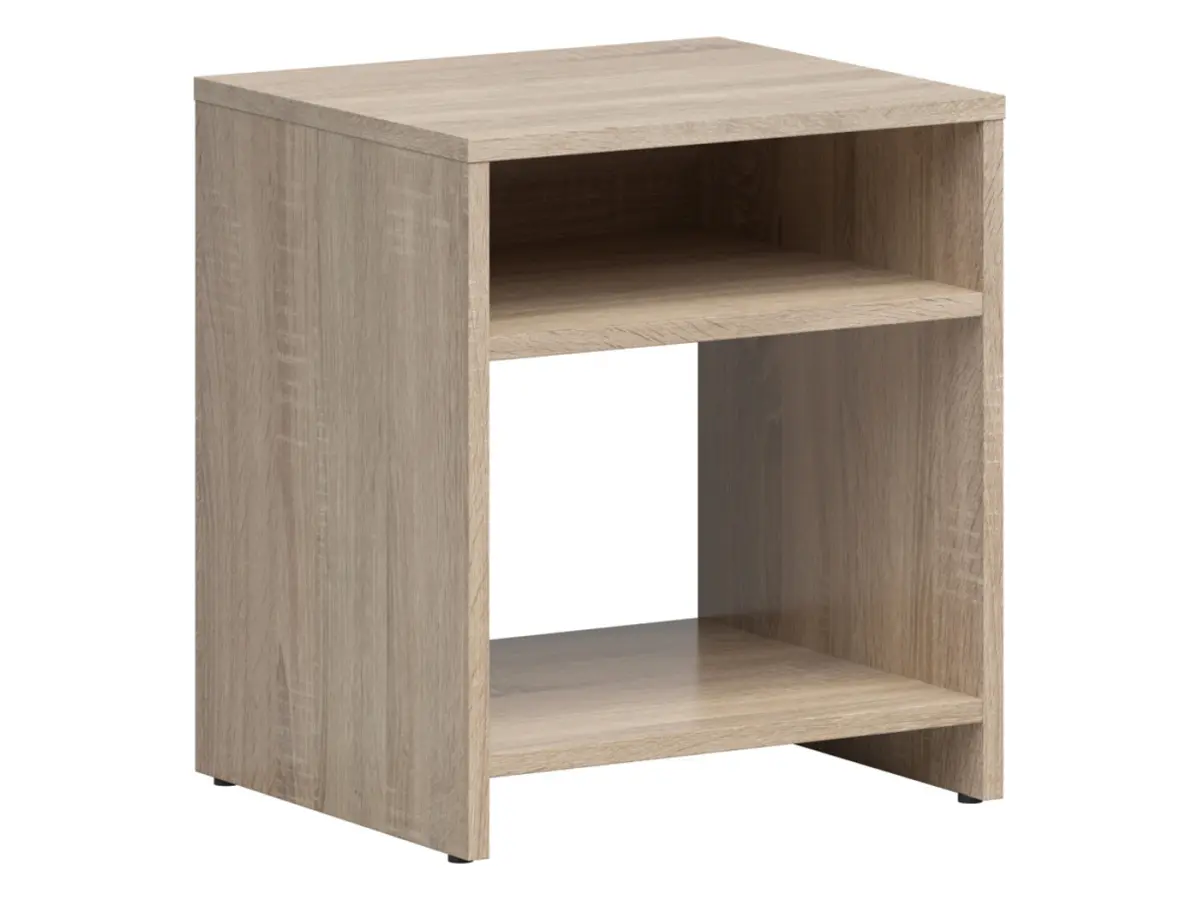 La mesita Neno en color roble sonoma tiene un estilo sencillo y atemporal que encaja sin esfuerzo en casi cualquier dormitorio. Su diseño minimalista y sus tonos claros aportan luz y orden al espacio, sin restar protagonismo al resto de la habitación.