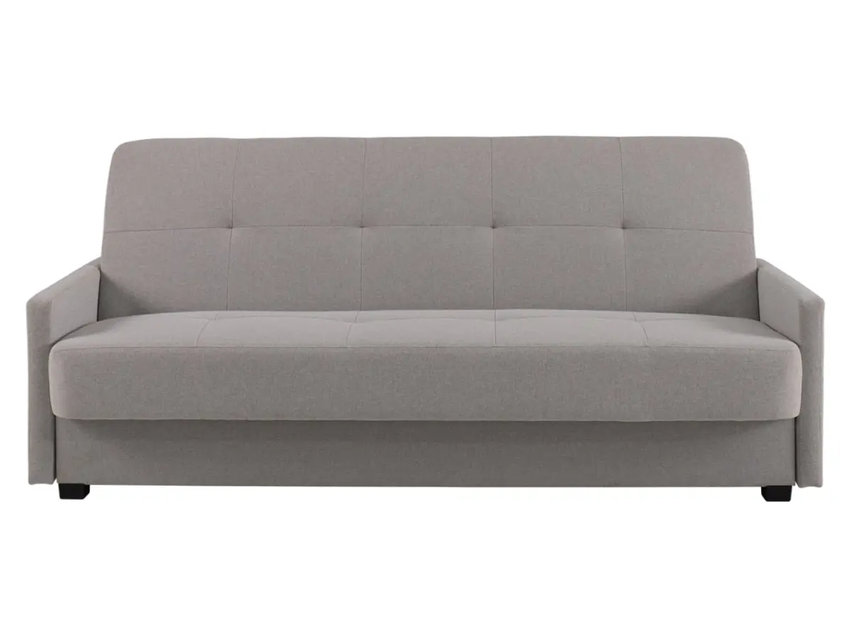 Sofá cama de tres plazas Maro plegable con arcón, tela trenzada gris