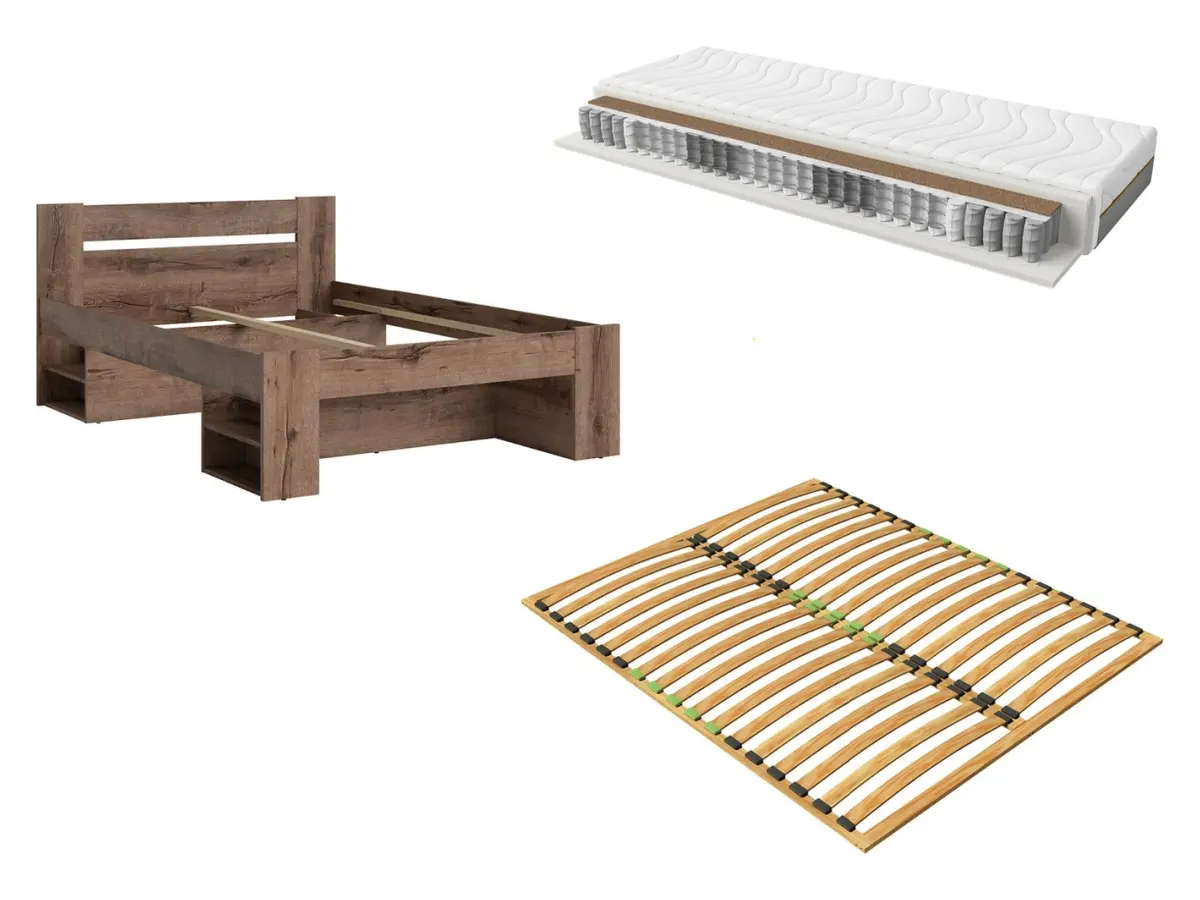 Conjunto de cama Nepo Plus roble noble con somier y colchón Ceres 140x200