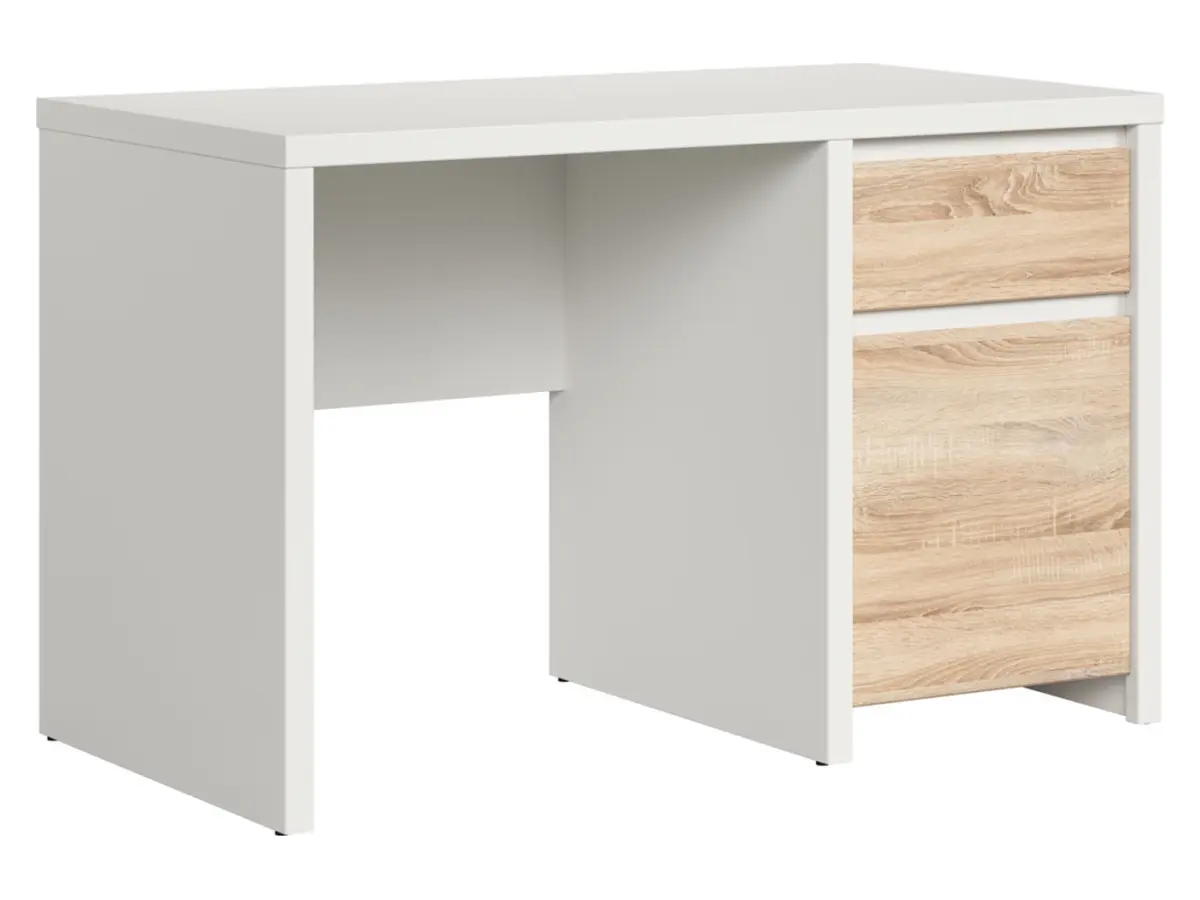 Escritorio Kaspian 120 cm con puertas y cajón blanco/roble sonoma
