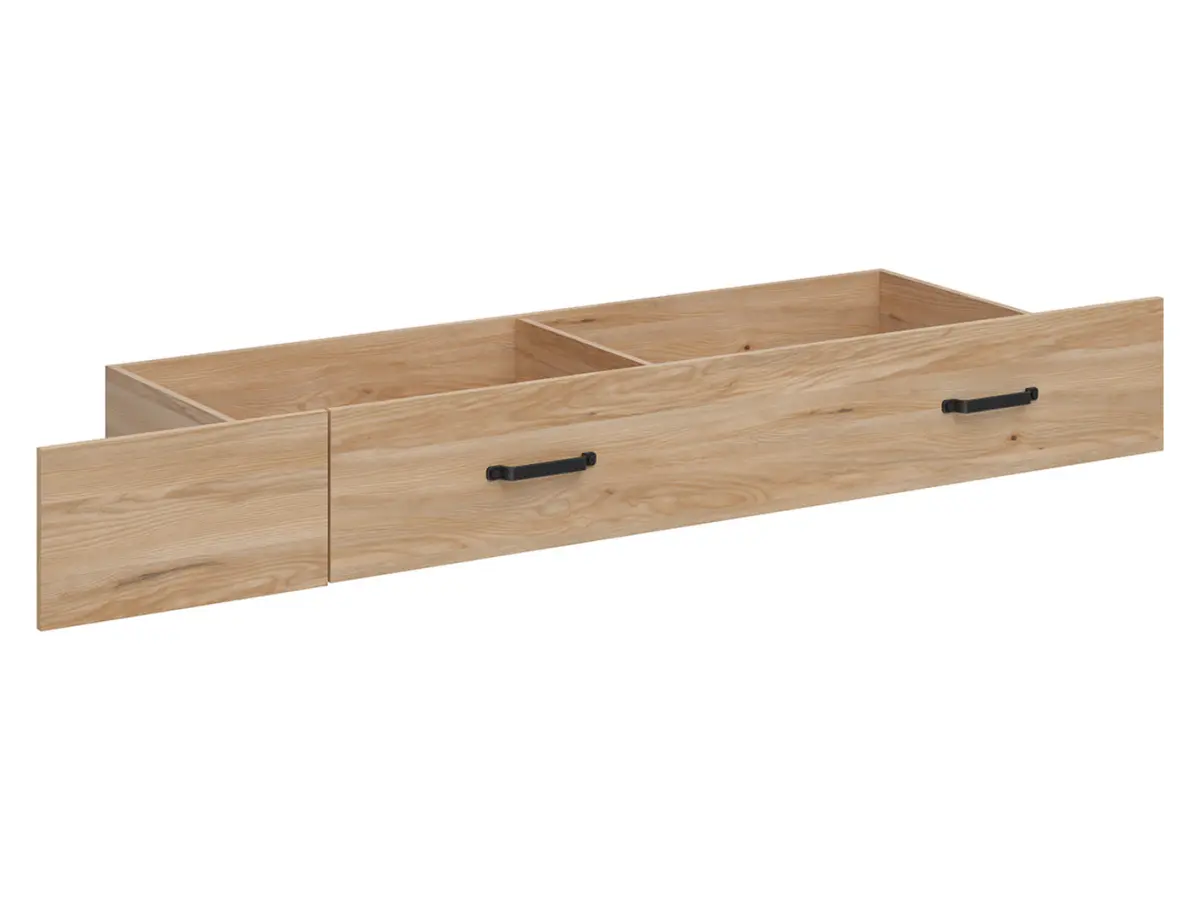 El cajón se desplaza sobre ruedas, lo que permite abrirlo y cerrarlo sin esfuerzo. Los tiradores negros garantizan un manejo cómodo, incluso cuando está lleno.