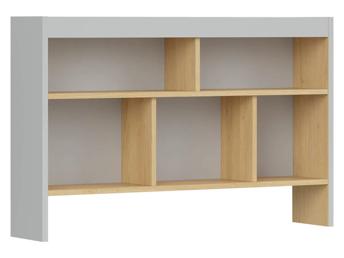 Светло-серый корпус гармонично сочетается с полками в цвете «польский дуб» — это уютное и стильное решение, которое отлично дополнит интерьер любой детской или подростковой комнаты.