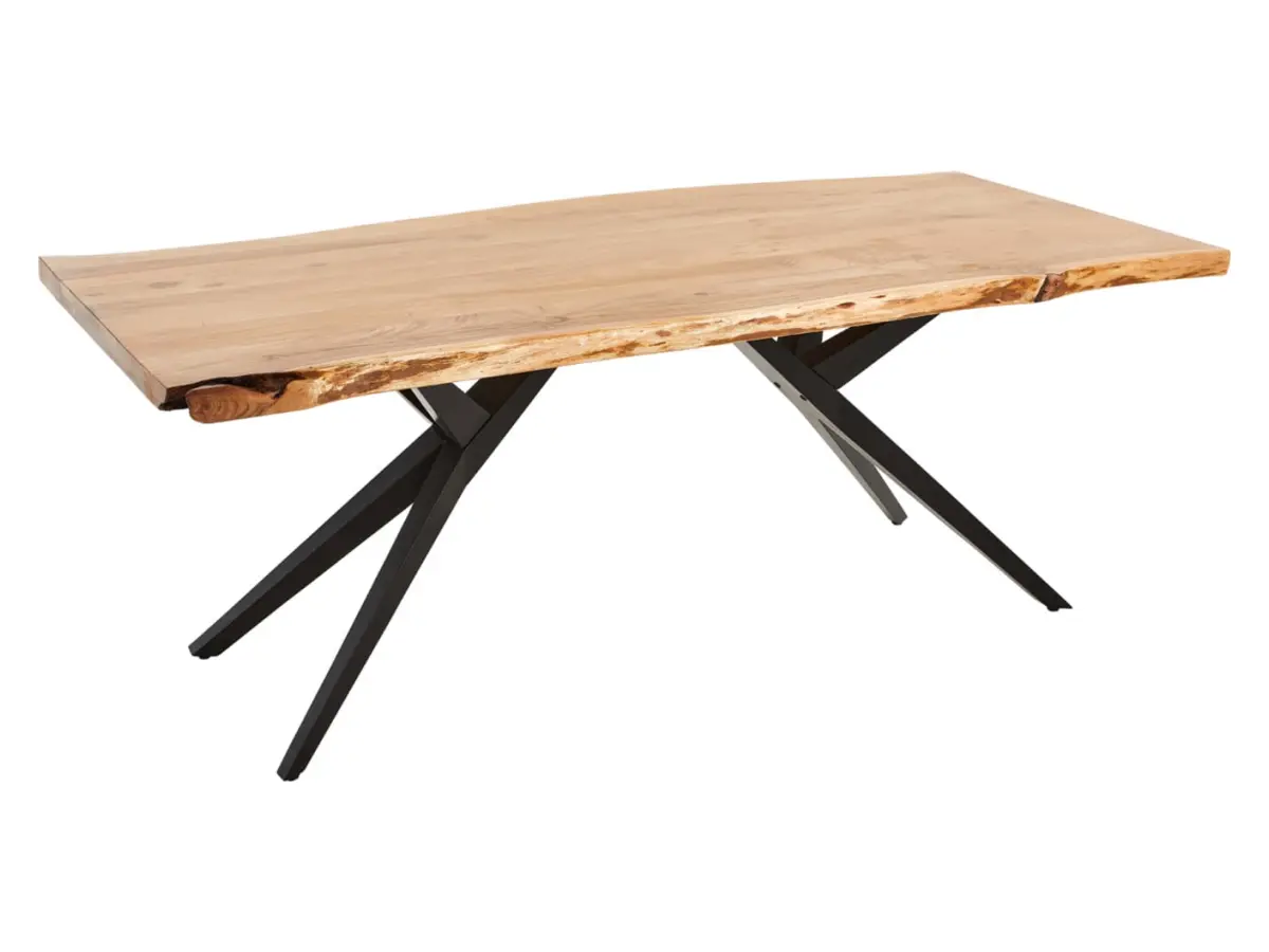 Стол Timon сочетает в себе теплоту массива акации с черным металлическим основанием в стиле лофт. Контраст между природным материалом и индустриальным стилем придает ему особую выразительность: этот предмет превратит любую столовую или гостиную в уникальное пространство.