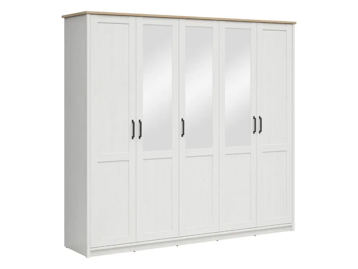 Пятидверный шкаф Loksa с 5 дверцами и зеркалом сосна андерсен белая
