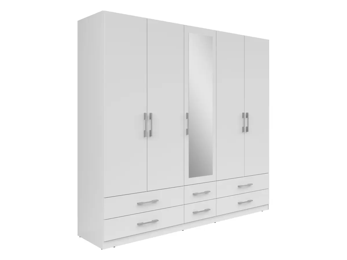 Шкаф пятидверный Herford 226 см с зеркалом и 6 ящиками белый