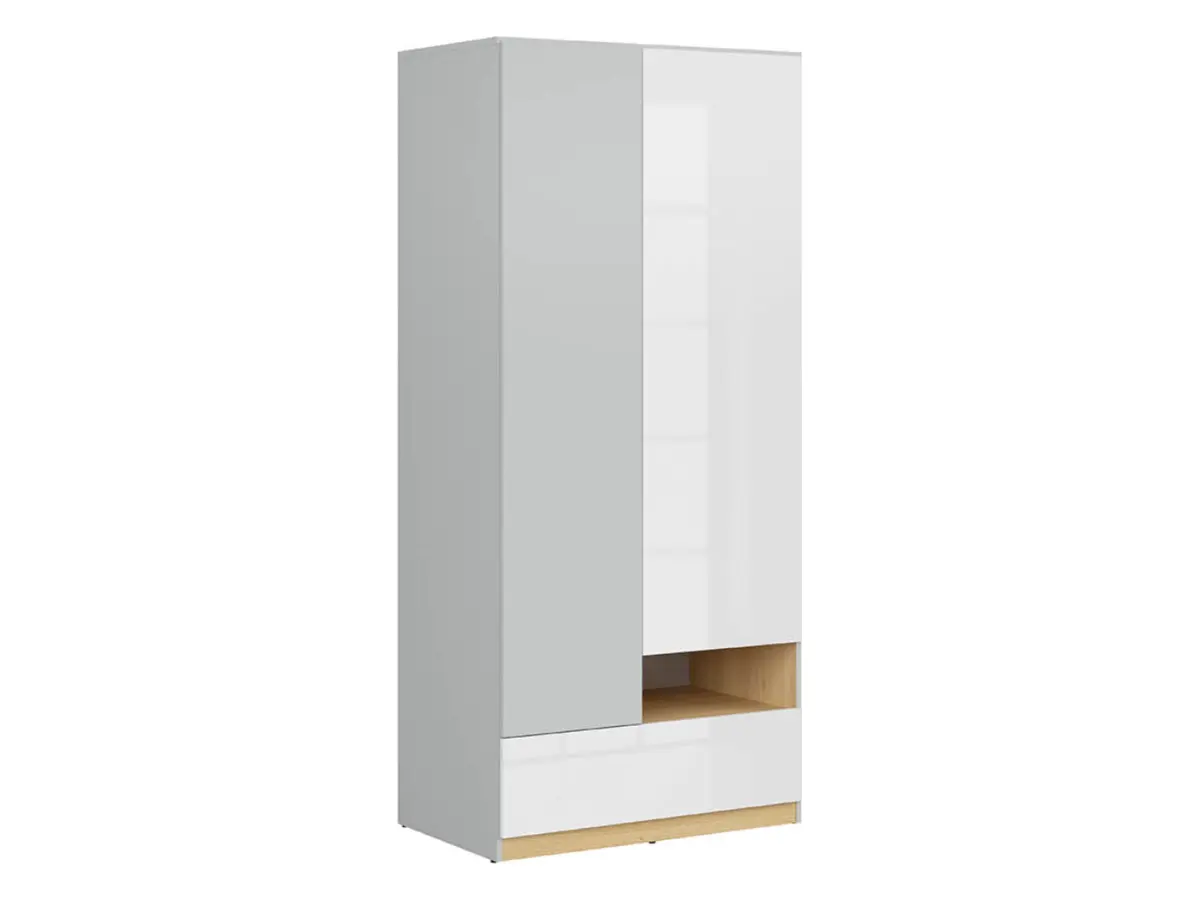 Шкаф двухдверный Nandu 90 см с ящиком светло-серый/дуб польский/белый глянец