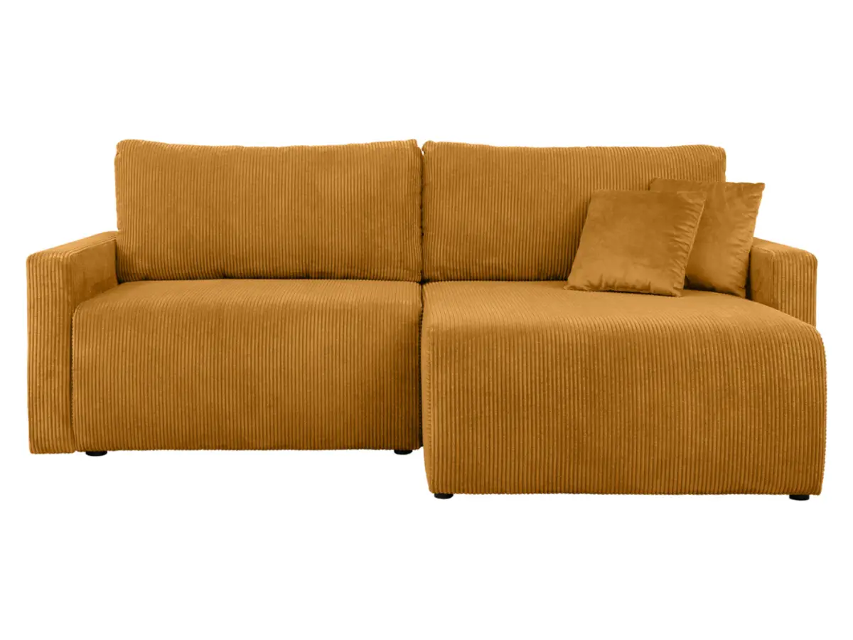 Універсальний кутовий диван Rufio розкладний з нішею вельветовий жовтий