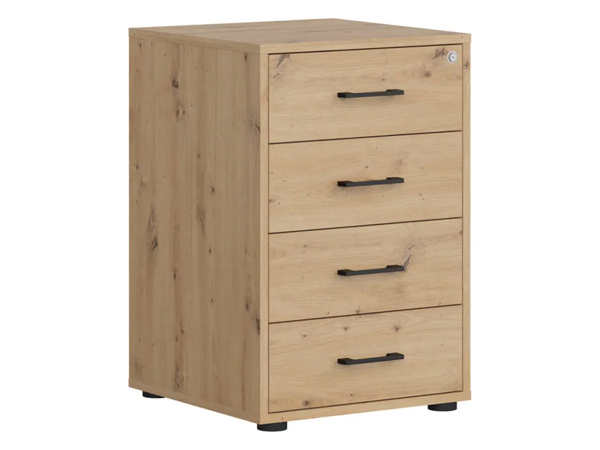 Чотири шухляди, щоб завжди мати під рукою ручки, стікери, степлер і все необхідне для повсякденної роботи в офісі. Можливість замикання на ключ захищає ваші речі, а верхня поверхня може слугувати підставкою для принтера або для розширення робочої зони.