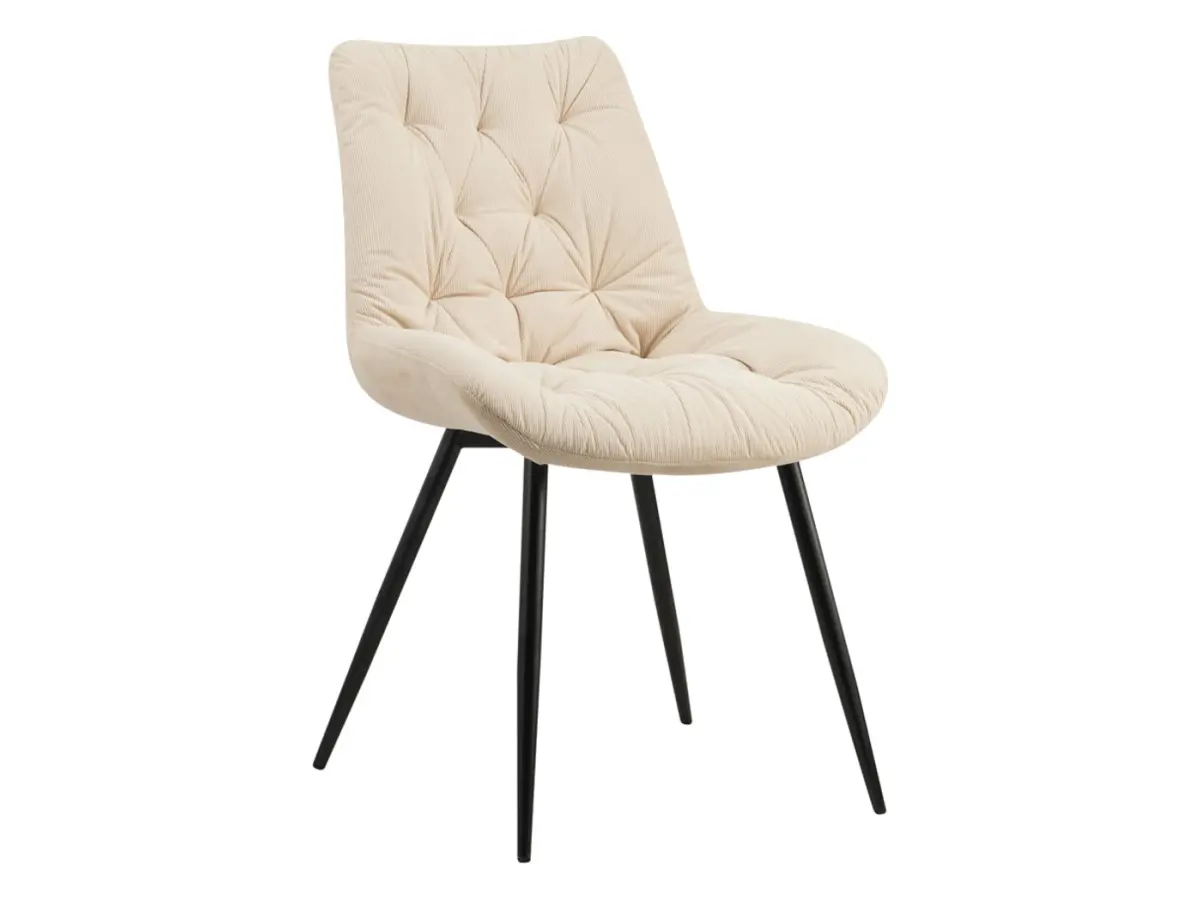 Широке сидіння з м'яким наповнювачем оббите високоякісним дрібним вельветом — приємним на дотик з першої миті та стійким до щоденного використання. Тканина, що запрошує затриматися за столом ще трохи.