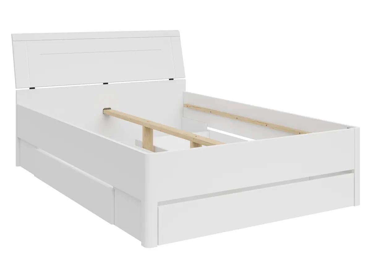 Три вбудовані шухляди під каркасом дозволяють ефективно використовувати кожен сантиметр простору. Вони ідеально підходять для зберігання постільної білизни та ковдр — усе необхідне буде під рукою, але не на видноті.