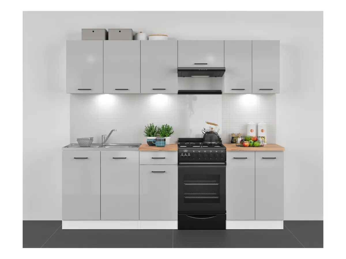 Кухонний гарнітур Junona Line 240 см світло-сірий глянець зі стільницею