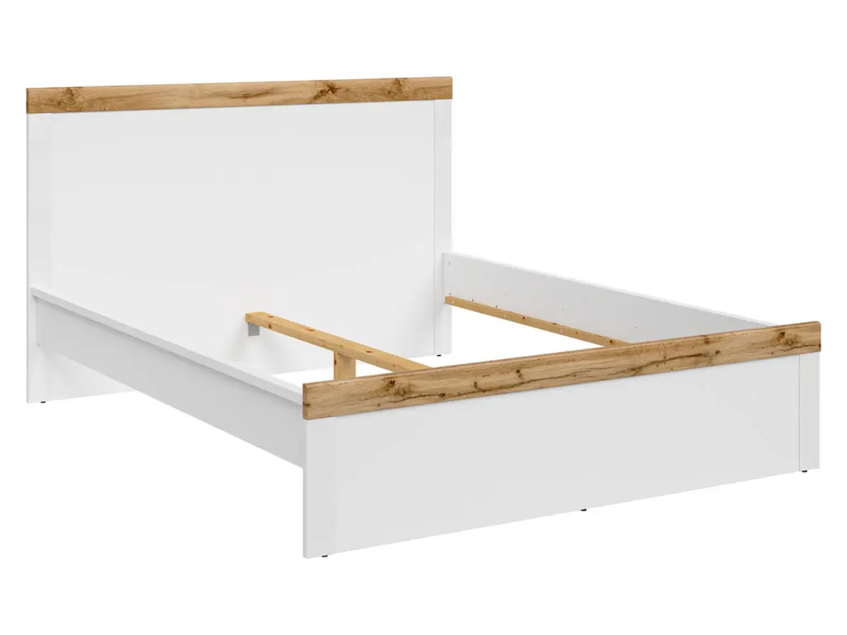 Білий корпус у поєднанні з декоративними планками узголів’я в кольорі дуб вотан створює теплий і сучасний контраст, характерний для колекції Holten. Лаконічні форми та виразні деталі дозволяють цьому ліжку легко оновити інтер'єр вашої спальні.